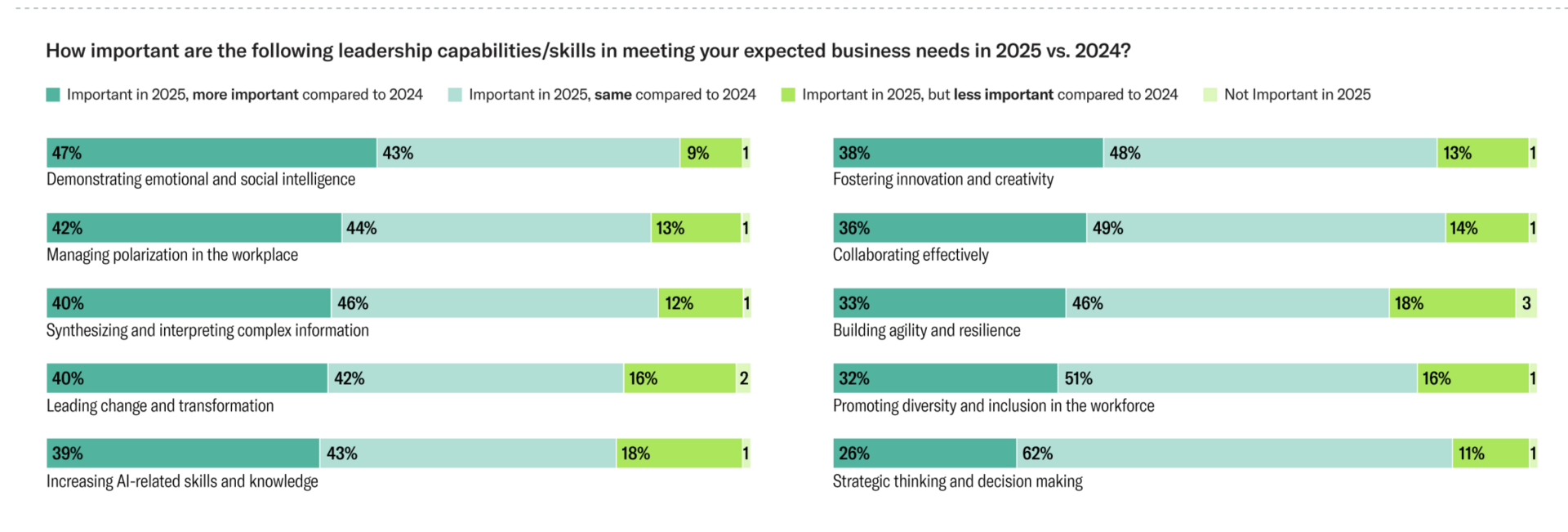 However, organisations now need the second kind of leader. Before I describe her, let me show you the statistics from Harvard Business Publishing's Global Leadership Development Study 2025.